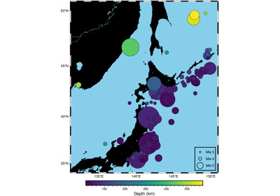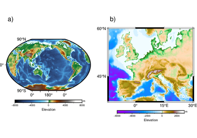 For GMT >=6.5.0, the fontsizes of the colorbar x-label, x-annotations, and y-label are scaled based on the width of the colorbar following \(\sqrt{colorbar\_width / 15}\). To set a desired fontsize via the GMT default parameters FONT_ANNOT_PRIMARY, FONT_ANNOT_SECONDARY, and FONT_LABEL (or jointly FONT) users have to divide the desired fontsize by the value calculated with the formula given above before passing it to the default parameters. To only affect fontsizes related to the colorbar, the defaults can be changed locally only using