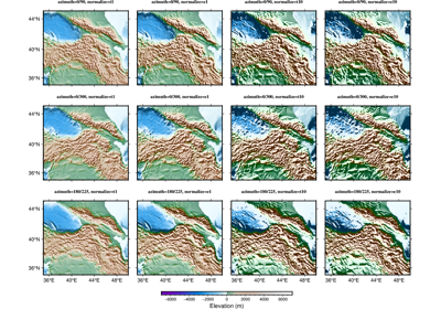 azimuth: Azimuth angle of the viewpoint in degrees [Default is 180, i.e., looking from south to north].